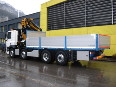 welche sehr robuste Eigenschaften besitzt und des weiteren sehr verwindungssteif ist. Die Kräne können front- und heckmontiert, fix montiert werden oder als Wechselaufbau ausgeführt werden.